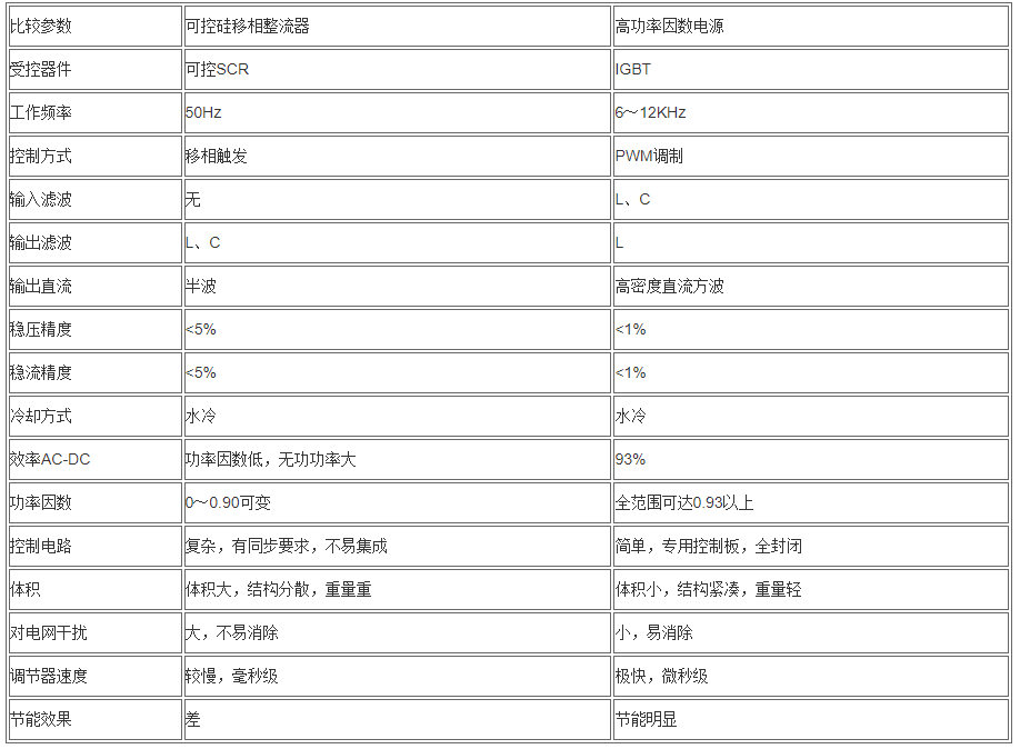 3.1可控硅電源與高功率因數(shù)電源的比較