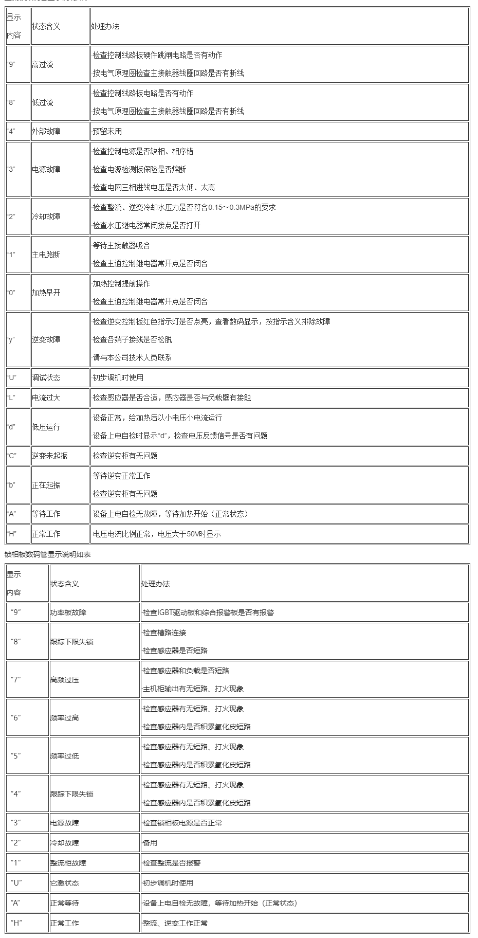 ? ? ? ?整機設(shè)置二十余種保護(hù)措施,提高設(shè)備穩(wěn)定性,防止設(shè)備損壞。有報警信息經(jīng)控制板相應(yīng)處理后送至STC單片機。通過數(shù)碼顯示,維護(hù)人員可方便了解設(shè)備故障原因及處理對策。